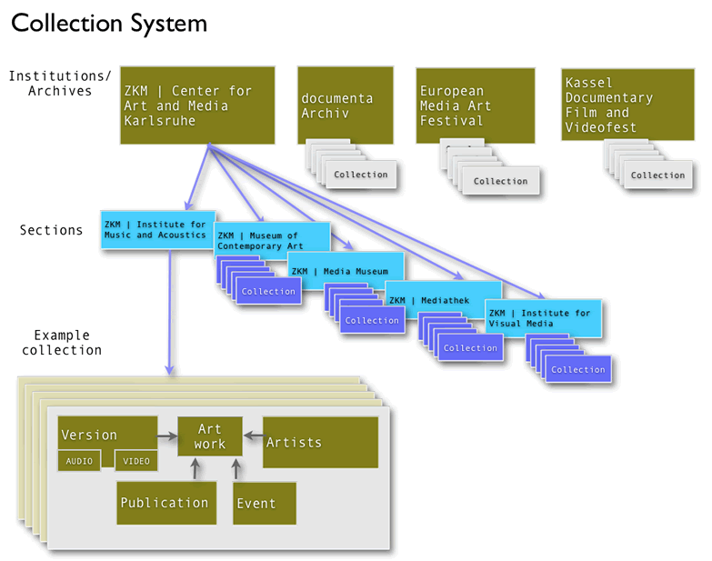Up to now, the systematic collection and description in media art archives has always occurred under consideration of individual interests and has not followed a generally accepted model. Even though a variety of accessible media art archives exists at the present time, their interlinking has been quite complicated (Blome 2009).